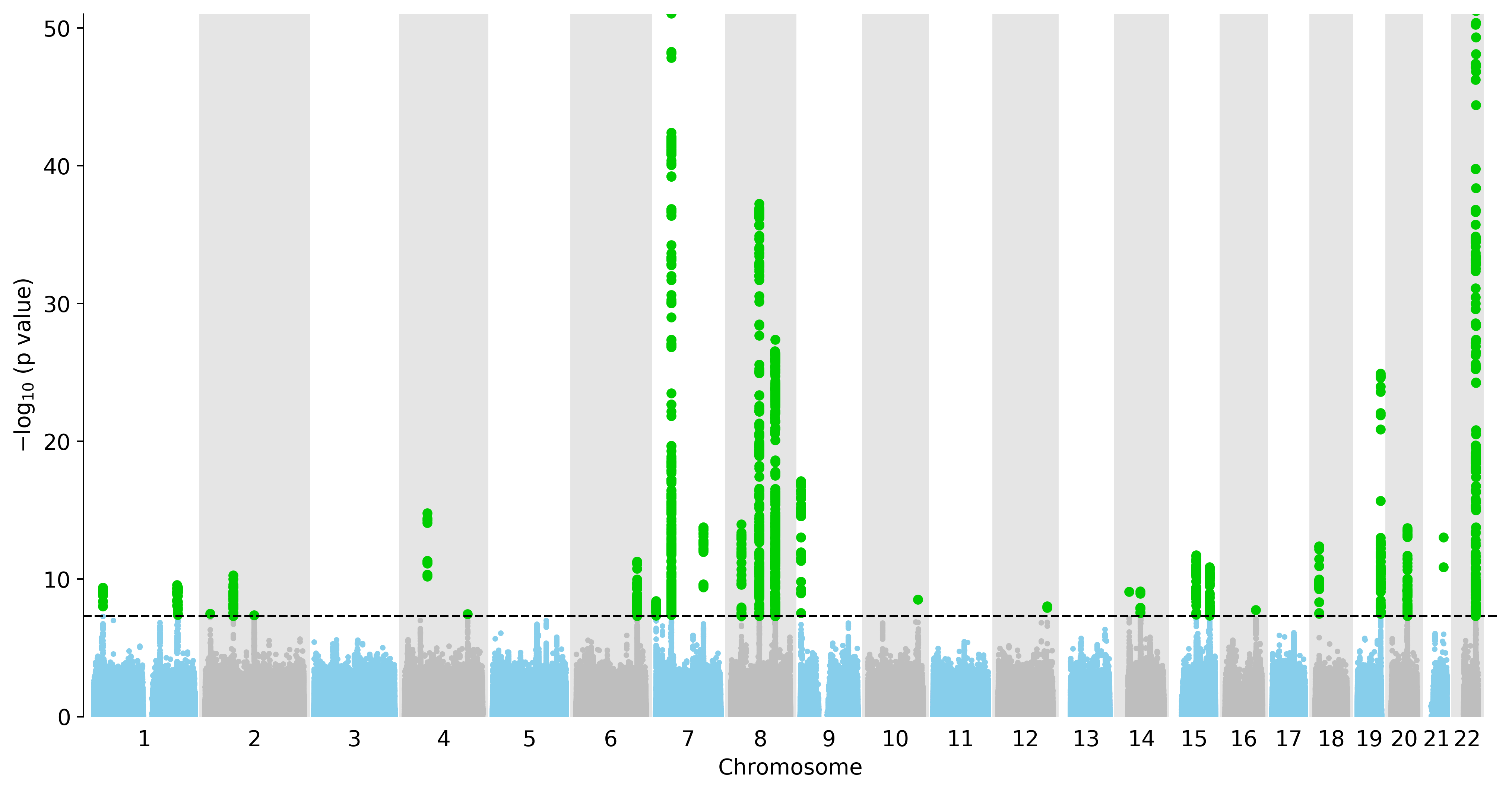 Manhattan Plot of All SNPs in the GWAS