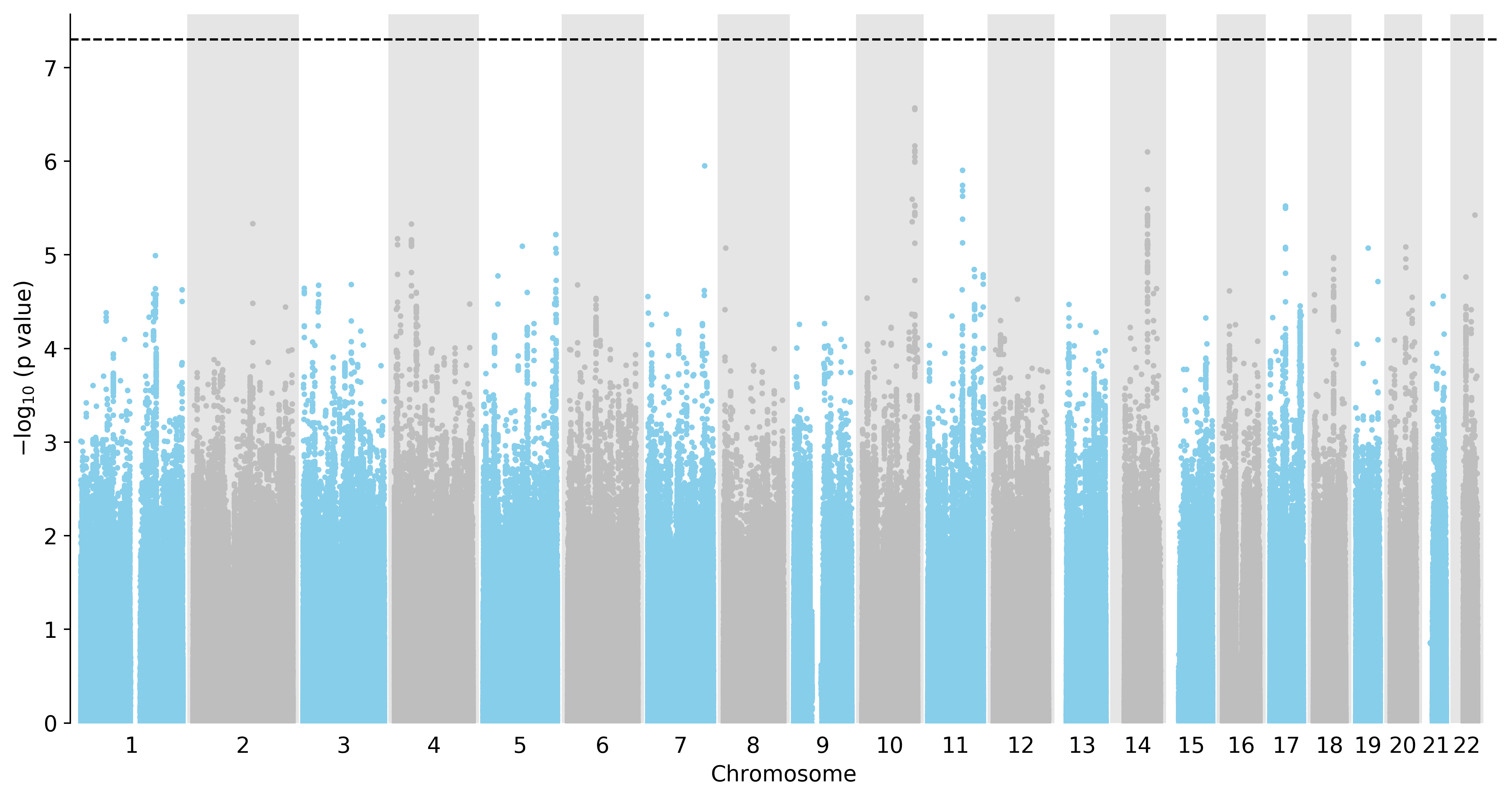 Manhattan Plot of All Genes in the GWAS