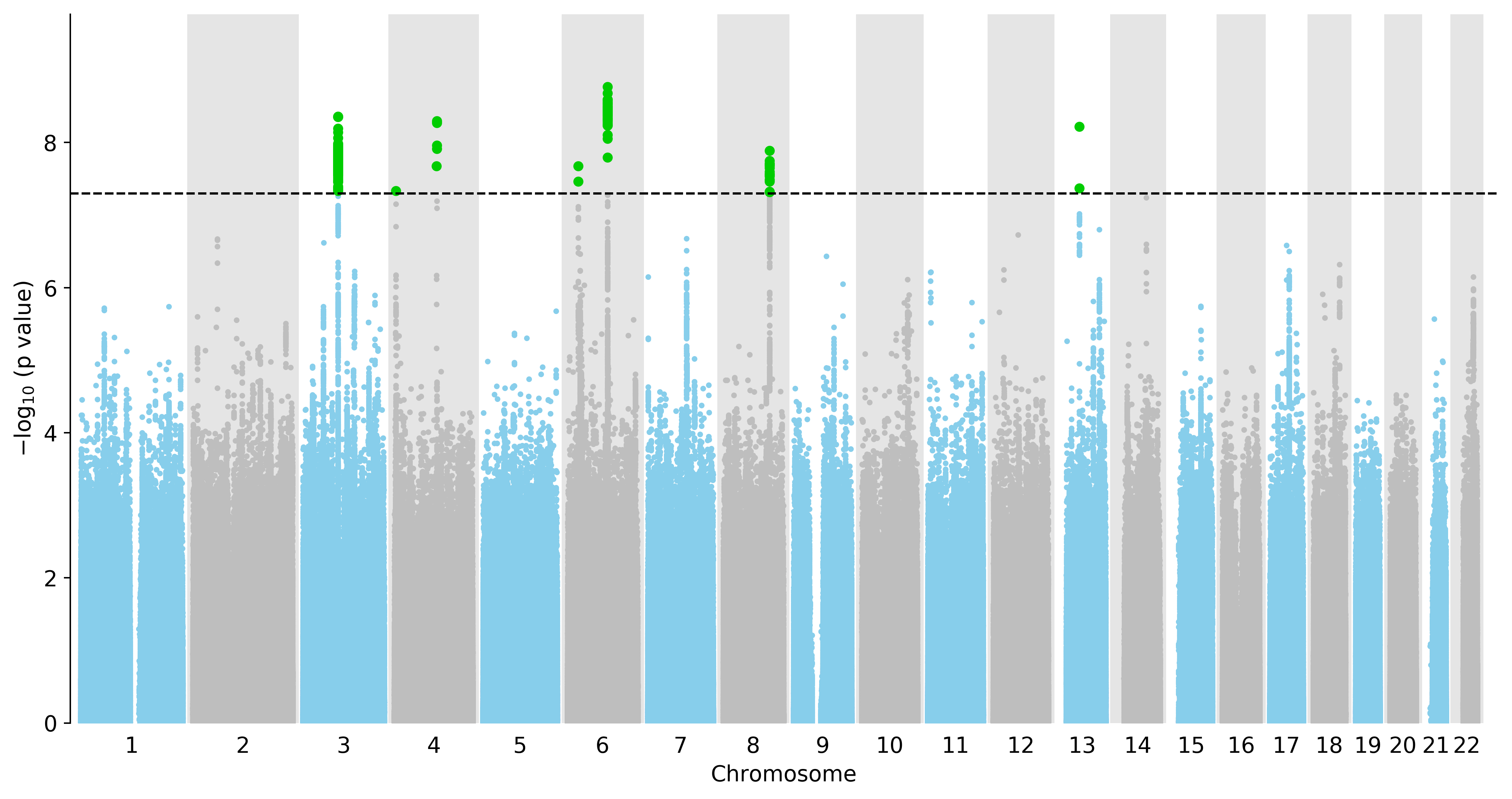 Manhattan Plot of All Genes in the GWAS