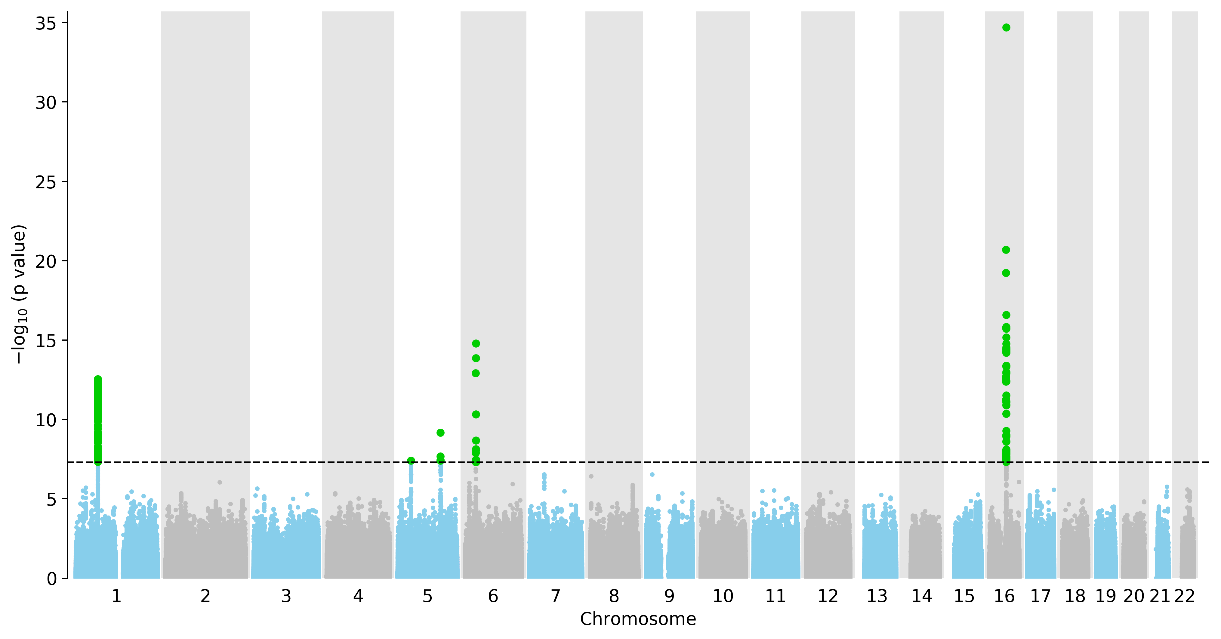 Manhattan Plot of All Genes in the GWAS