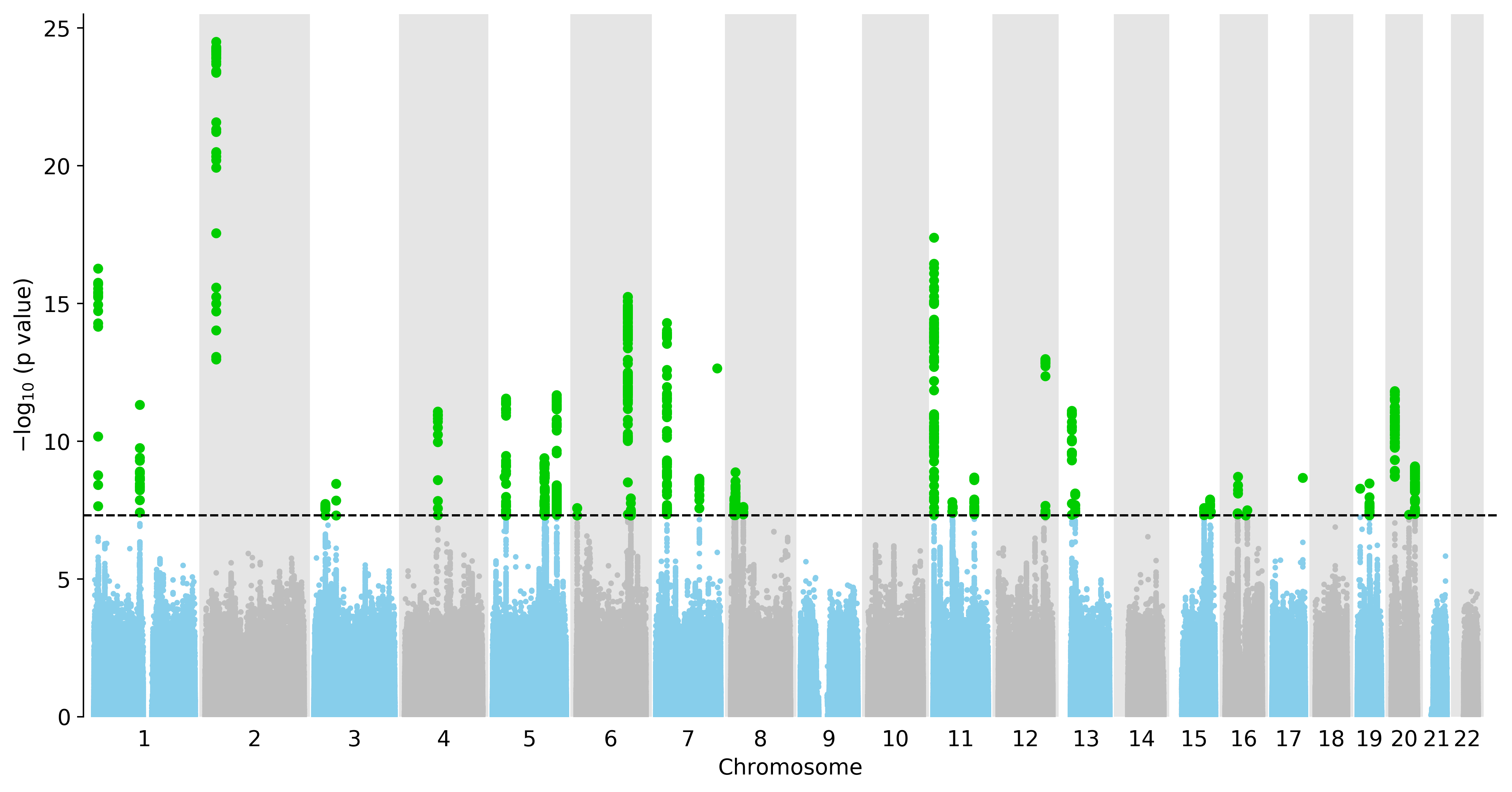 Manhattan Plot of All Genes in the GWAS