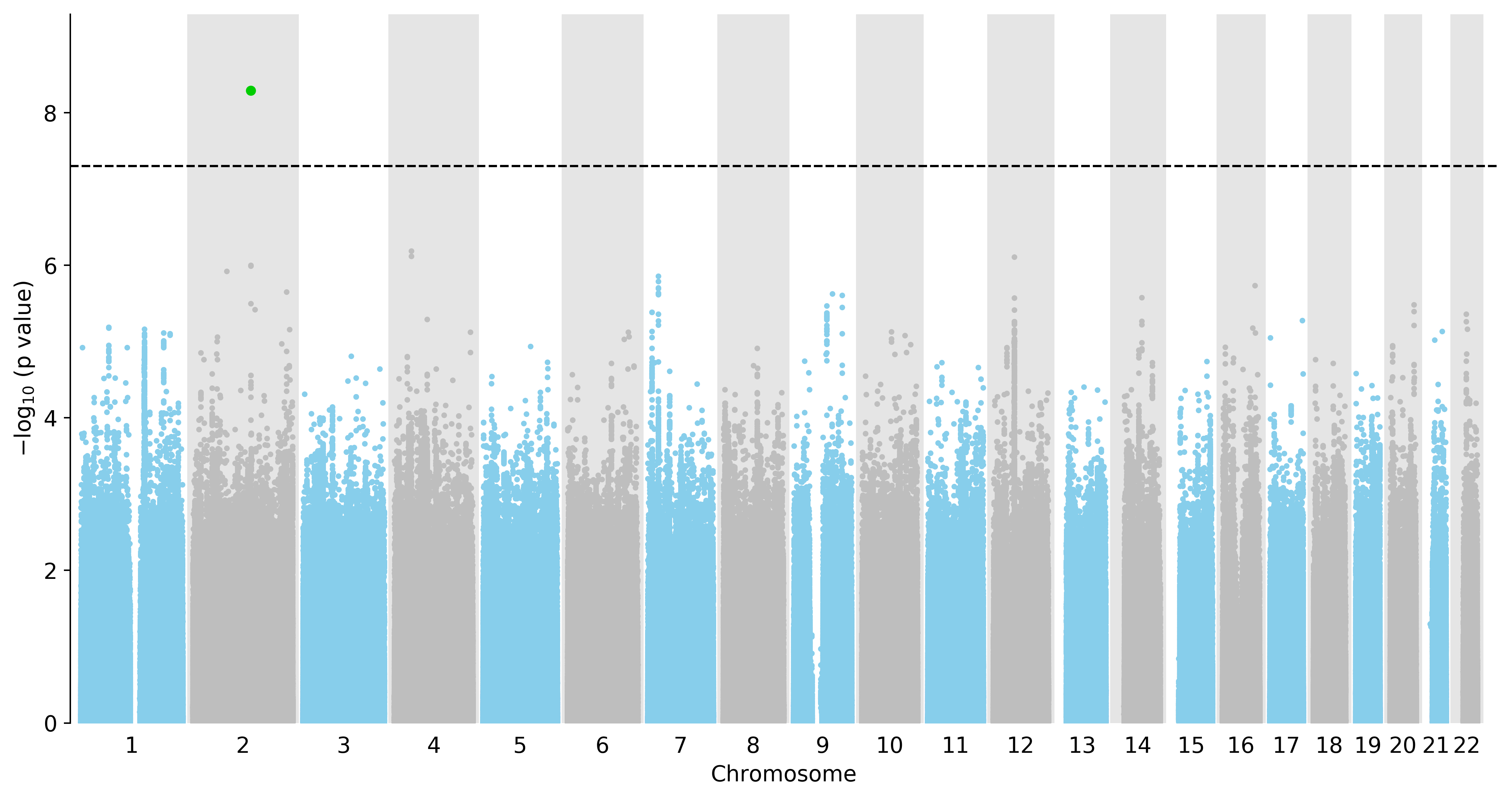 Manhattan Plot of All SNPs in the GWAS