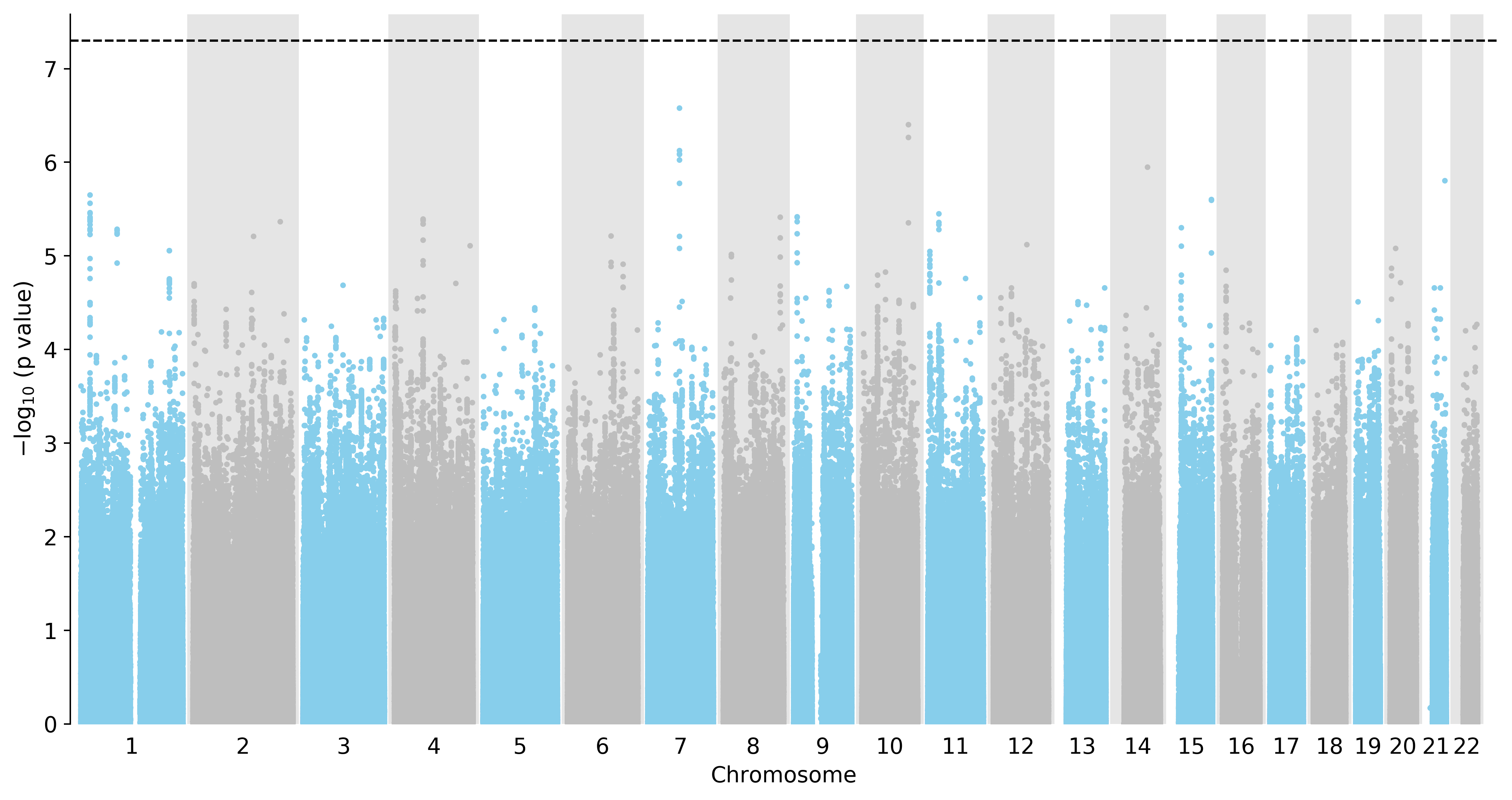 Manhattan Plot of All Genes in the GWAS