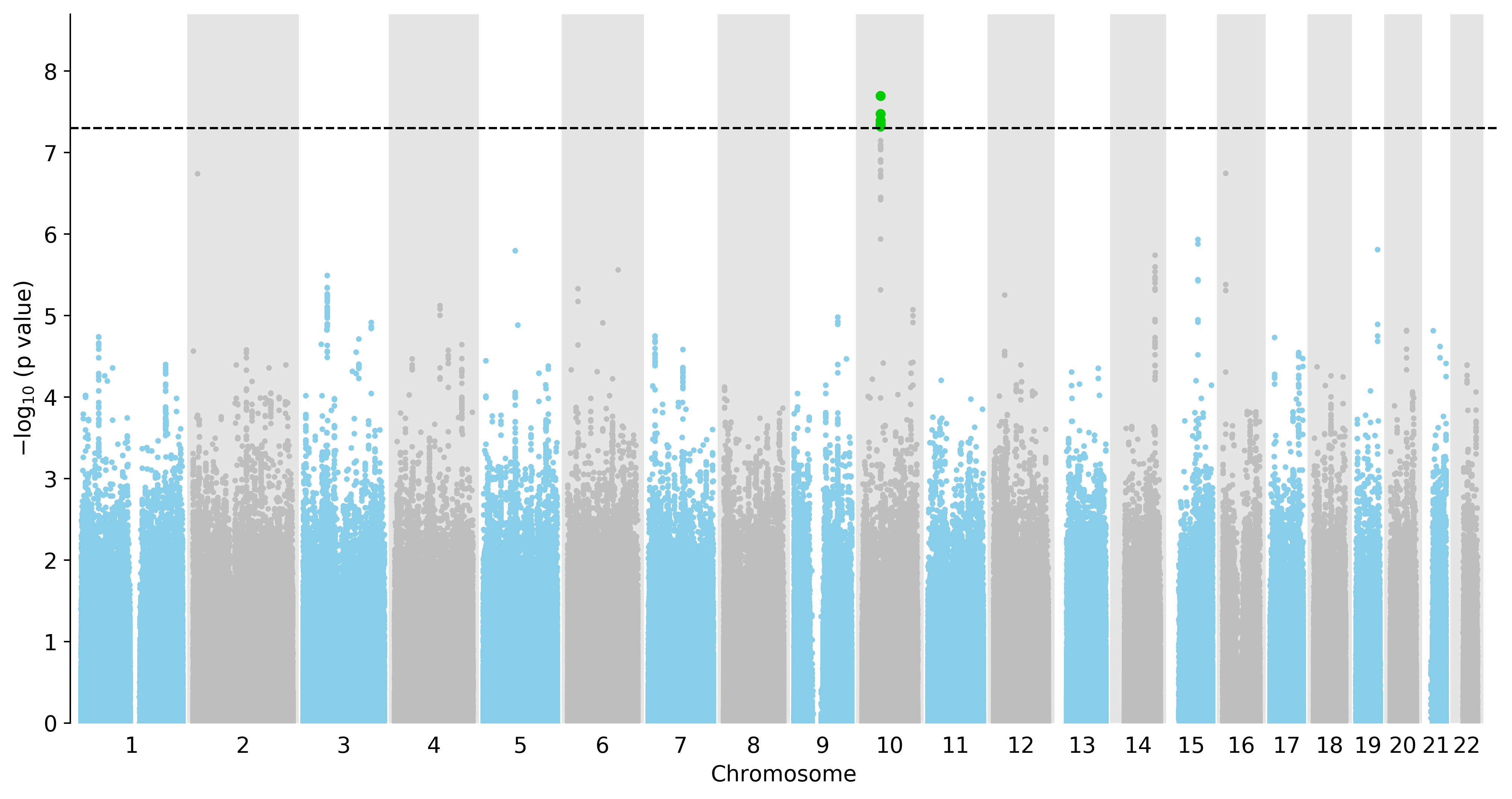Manhattan Plot of All SNPs in the GWAS