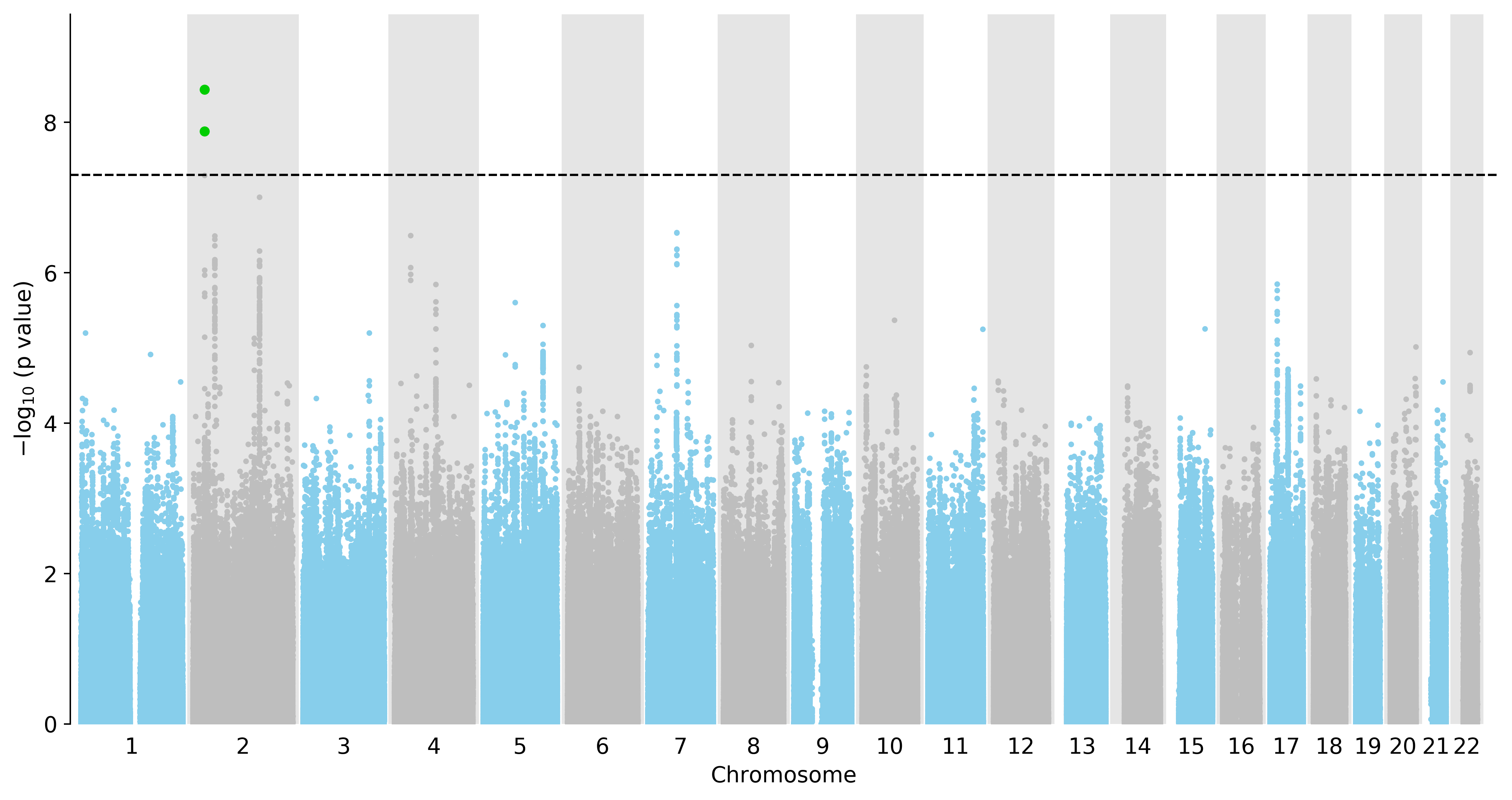 Manhattan Plot of All Genes in the GWAS