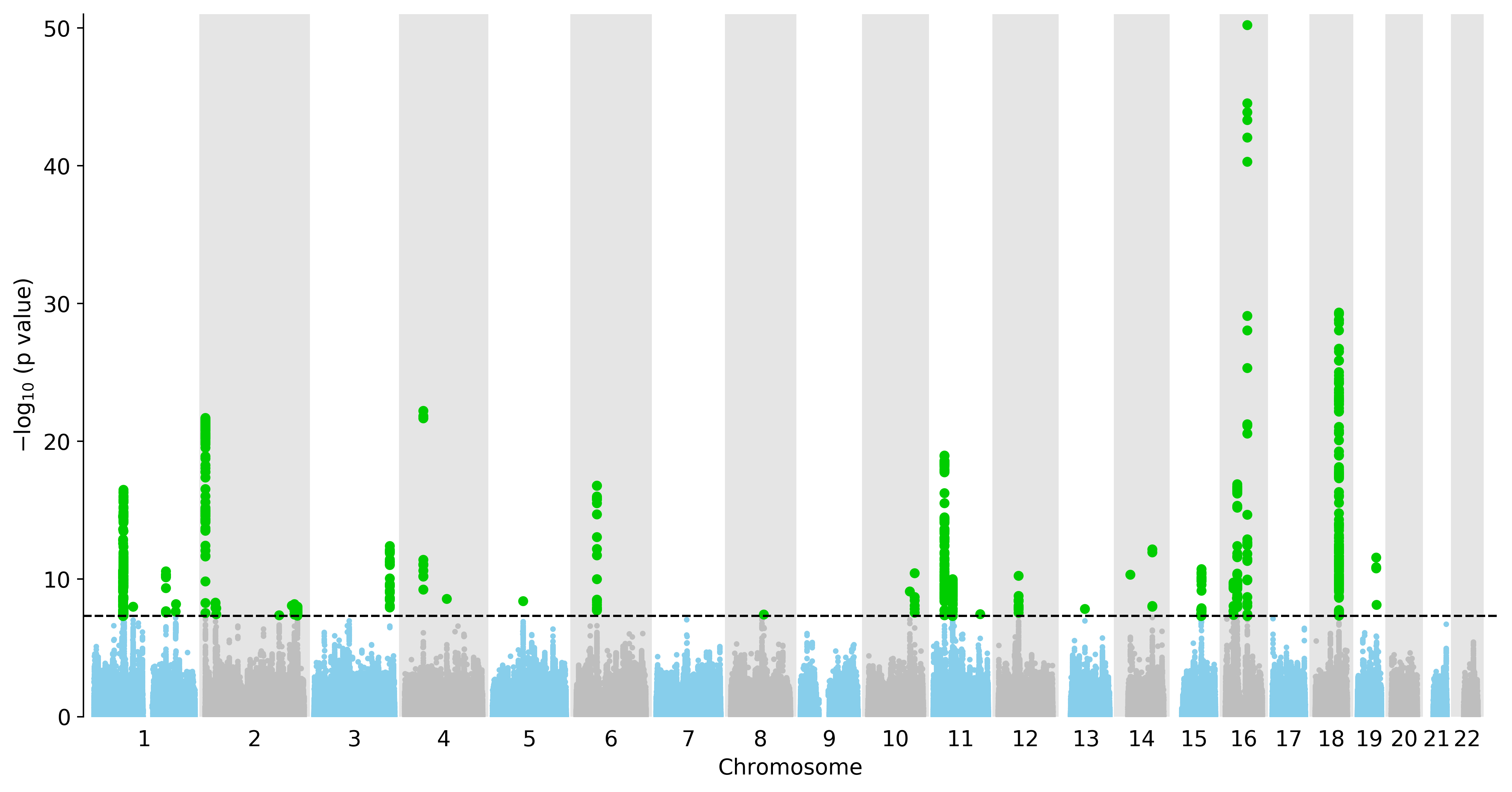 Manhattan Plot of All Genes in the GWAS