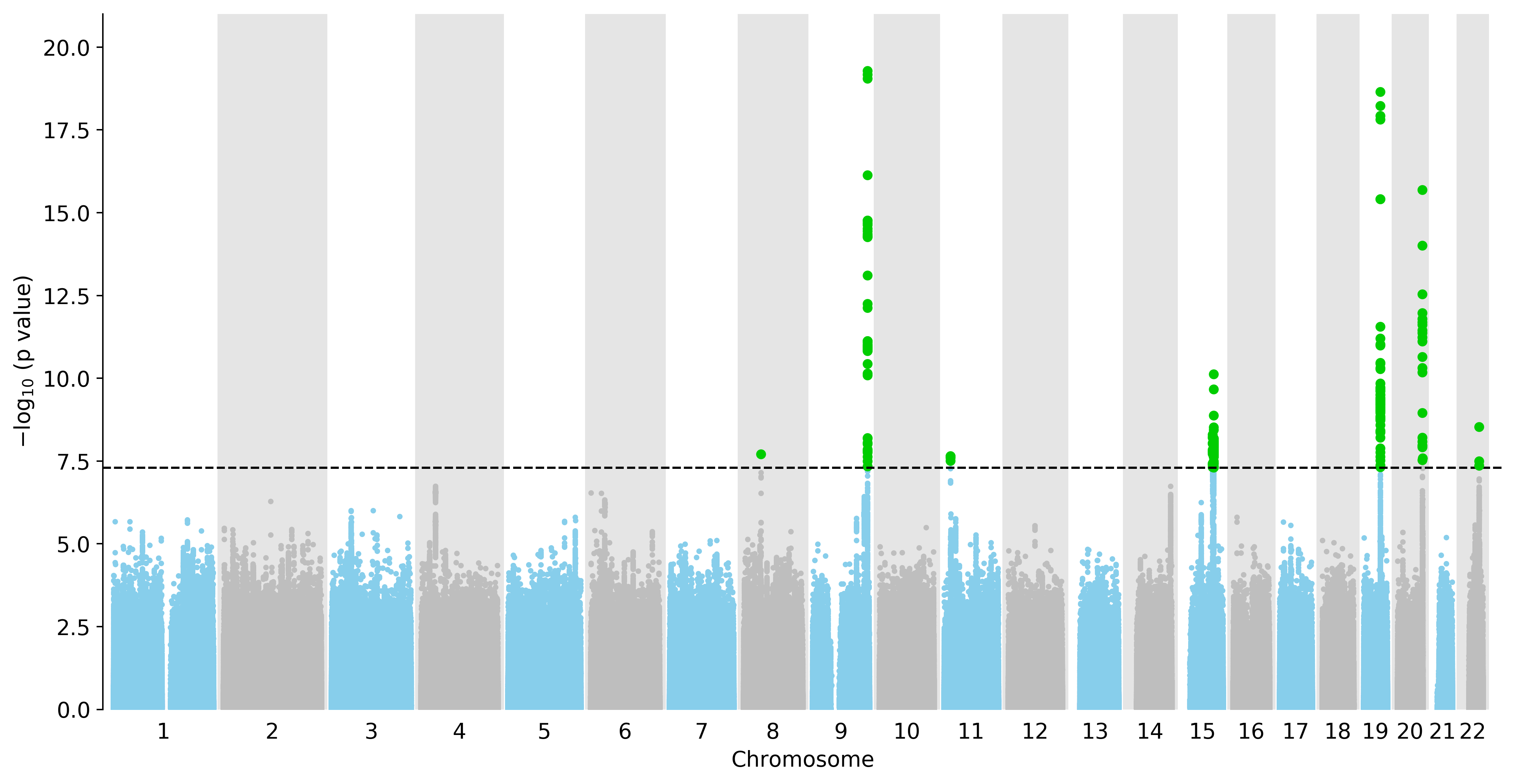 Manhattan Plot of All Genes in the GWAS