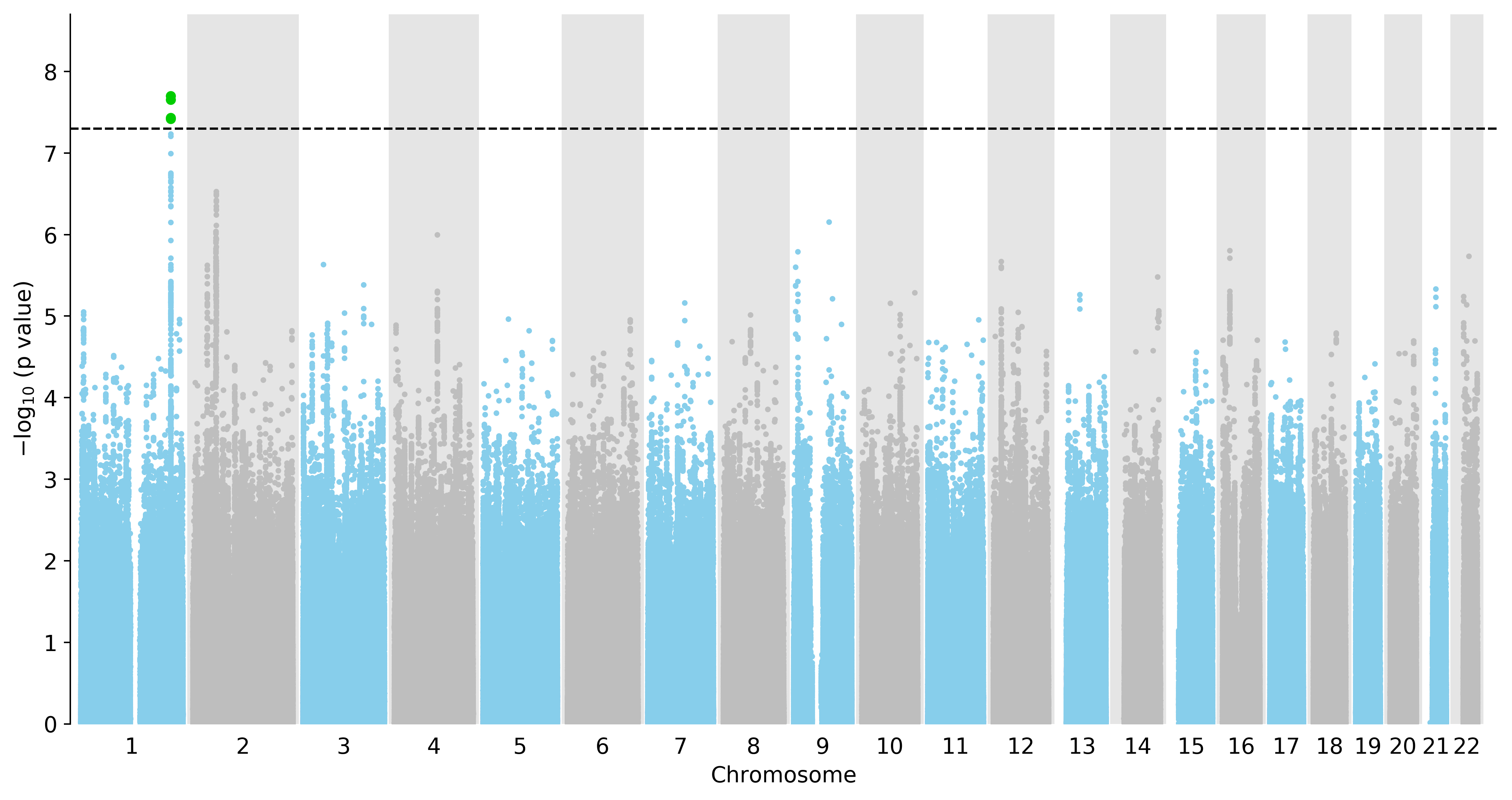 Manhattan Plot of All SNPs in the GWAS