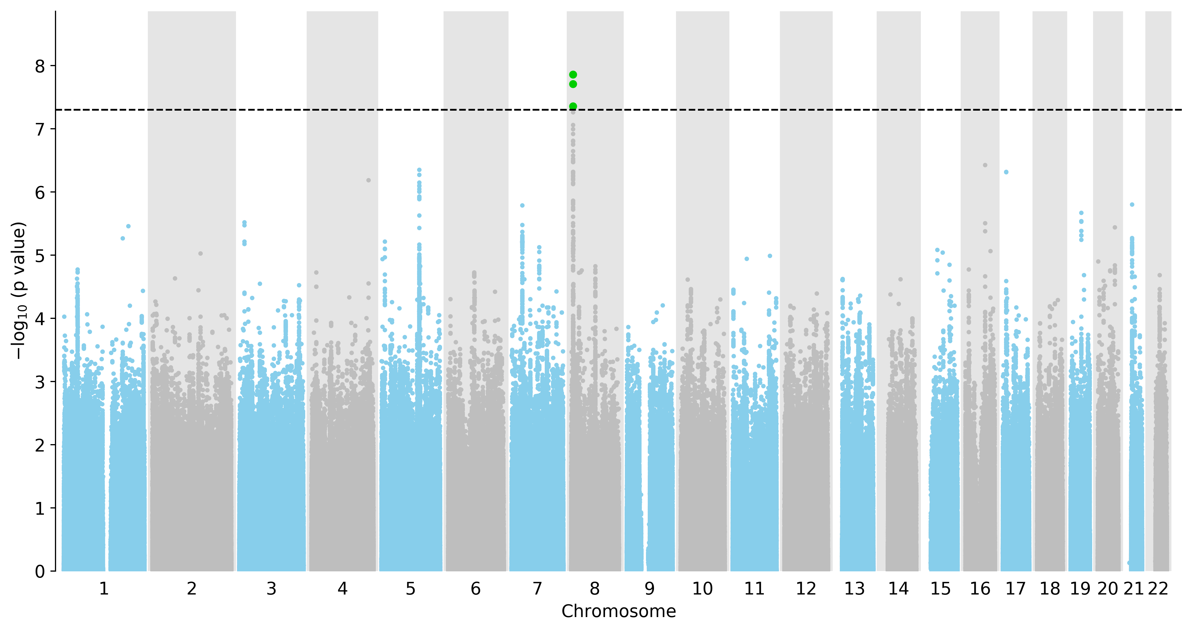 Manhattan Plot of All SNPs in the GWAS